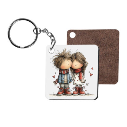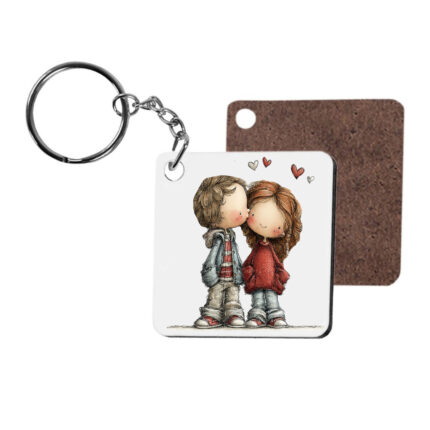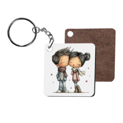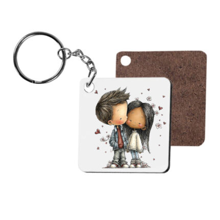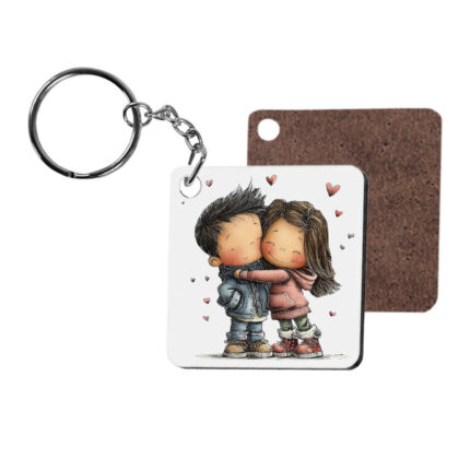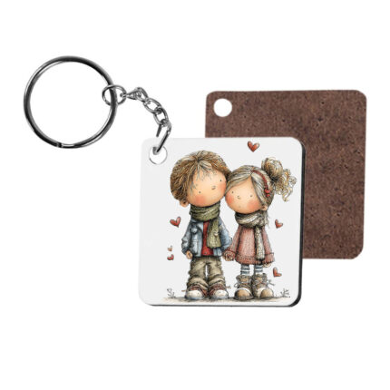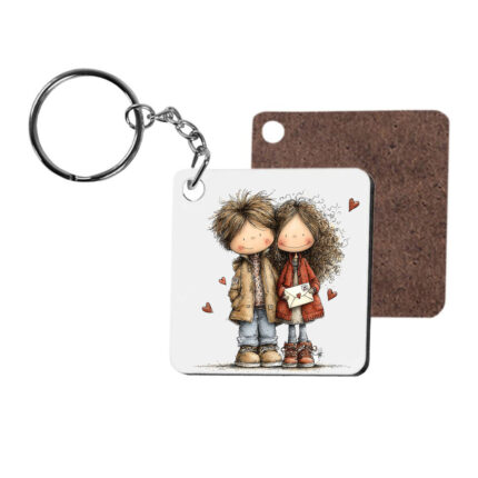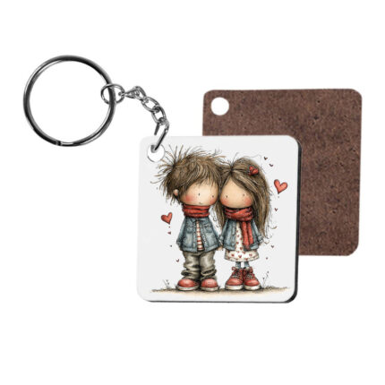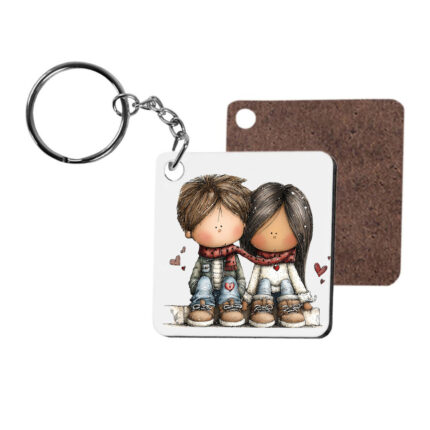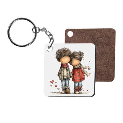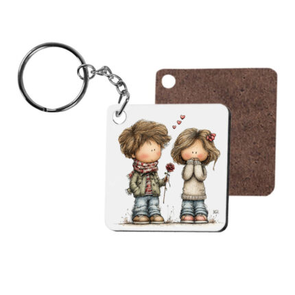 Ξύλινο Μπρελόκ τετράγωνο Αγίου Βαλεντίνου Ζευγάρια