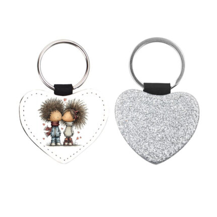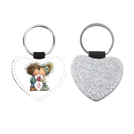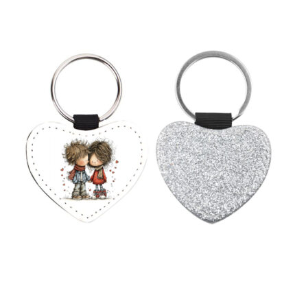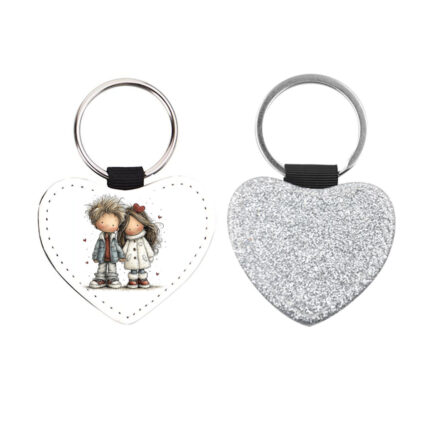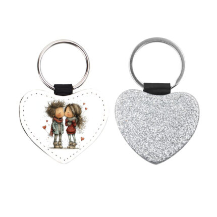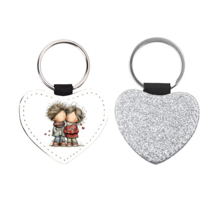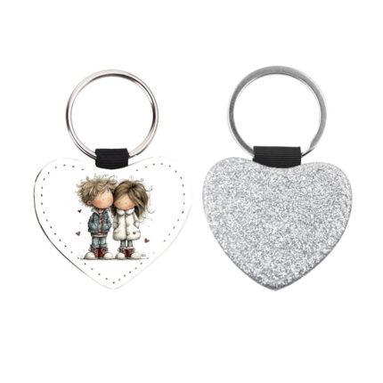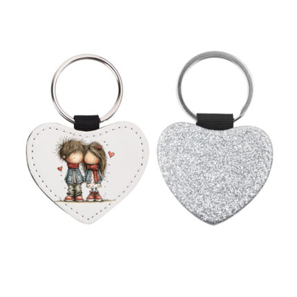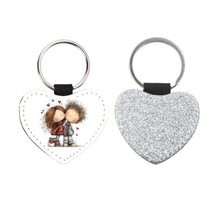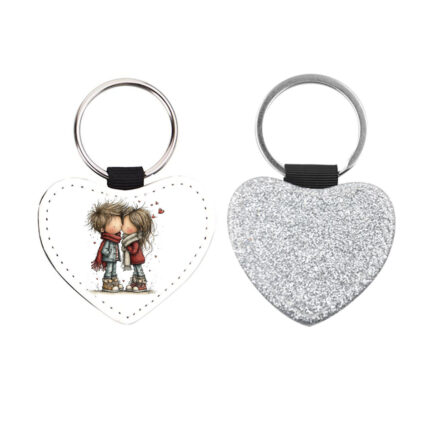 Δερμάτινο Μπρελόκ καρδιά Αγίου Βαλεντίνου Ζευγάρια Glitter Ασημί