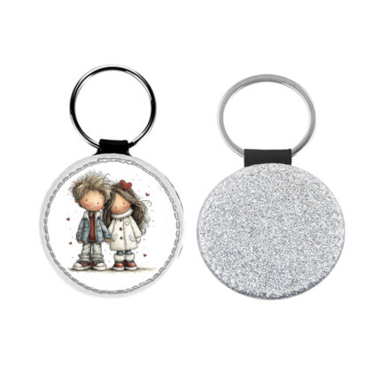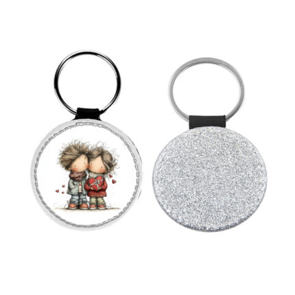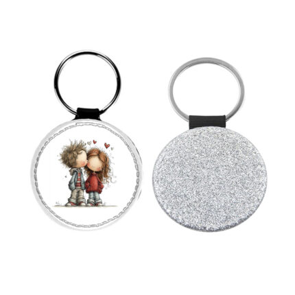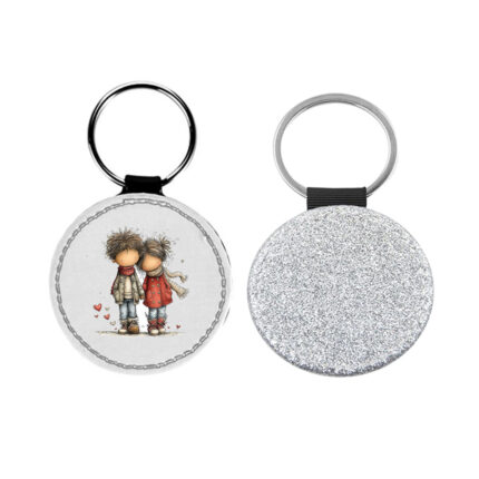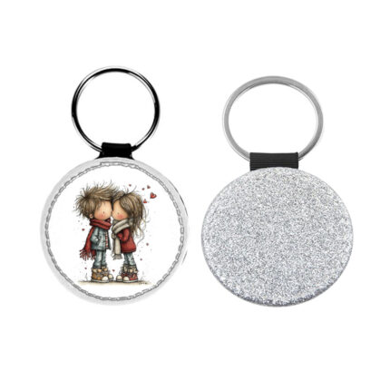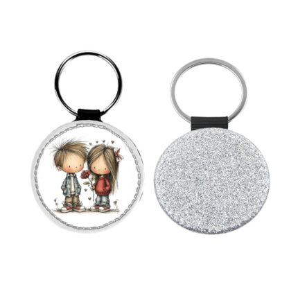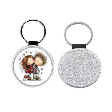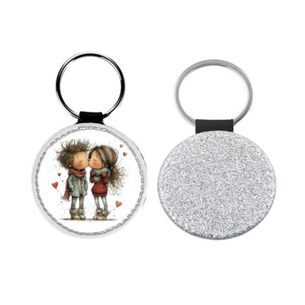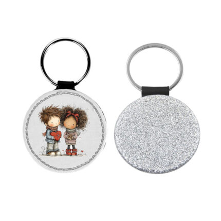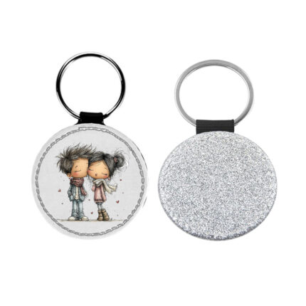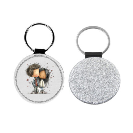Δερμάτινο Μπρελόκ στρογγυλό Αγίου Βαλεντίνου Ζευγάρια Glitter Ασημί
