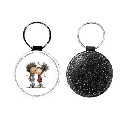 Δερμάτινο Μπρελόκ στρογγυλό Αγίου Βαλεντίνου Ζευγάρια Glitter Μαύρο