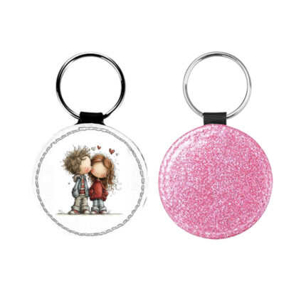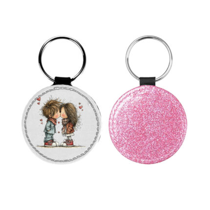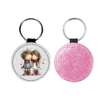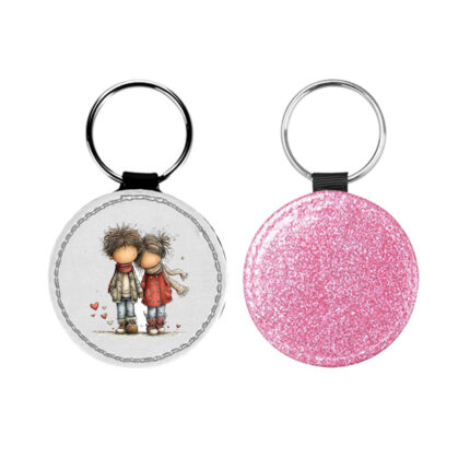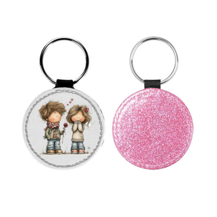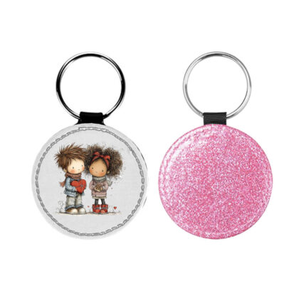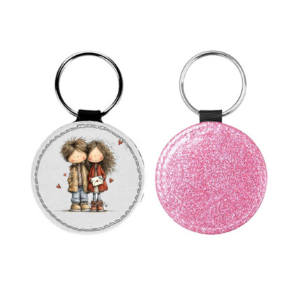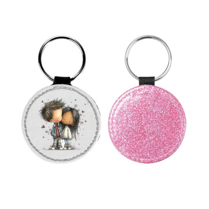 Δερμάτινο Μπρελόκ στρογγυλό Αγίου Βαλεντίνου Ζευγάρια Glitter Ροζ