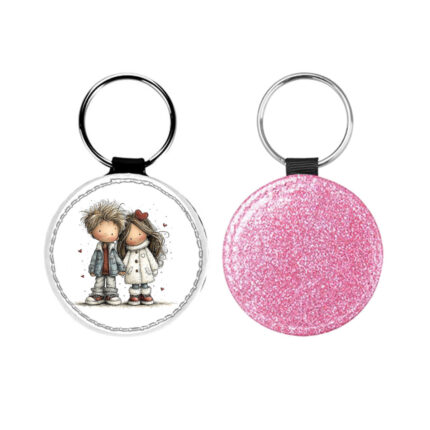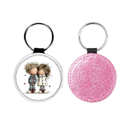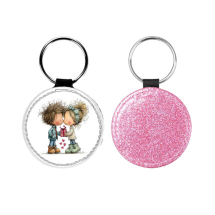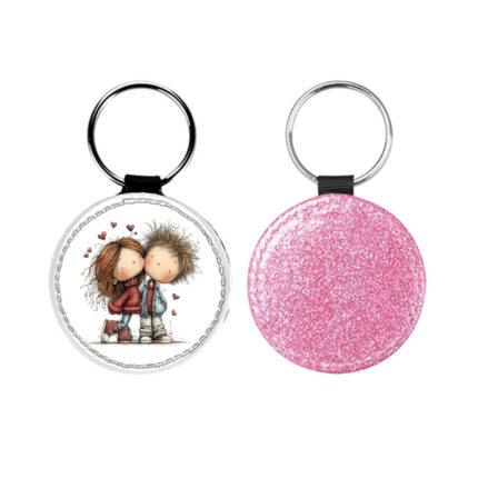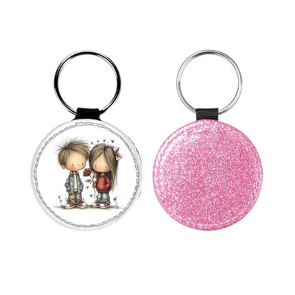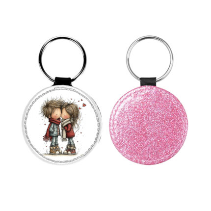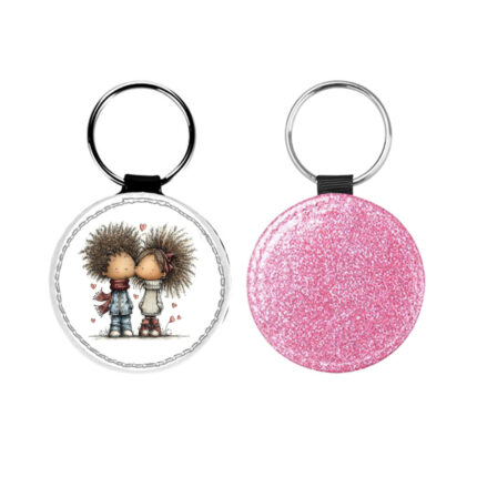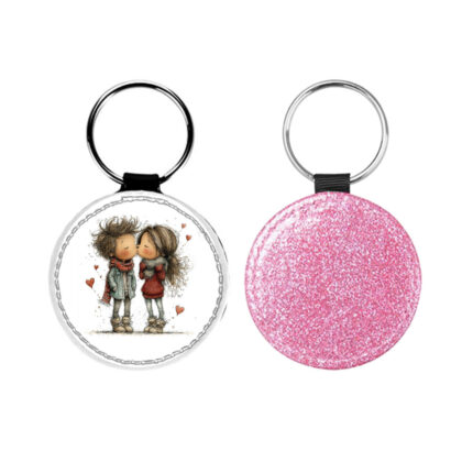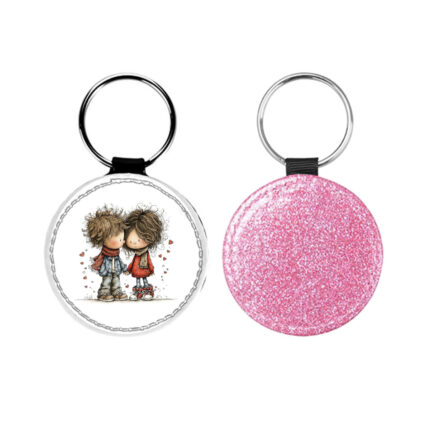 Δερμάτινο Μπρελόκ στρογγυλό Αγίου Βαλεντίνου Ζευγάρια Glitter Ροζ