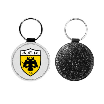 Δερμάτινο Μπρελόκ στρογγυλό ΑΕΚ Glitter Μαύρο