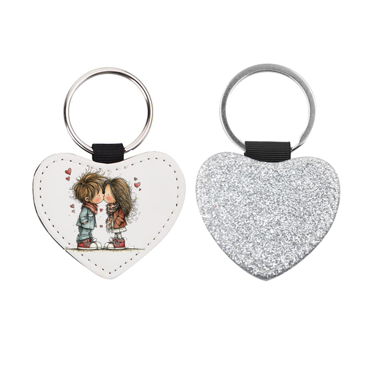 Δερμάτινο Μπρελόκ καρδιά Αγίου Βαλεντίνου Ζευγάρια Glitter Ασημί