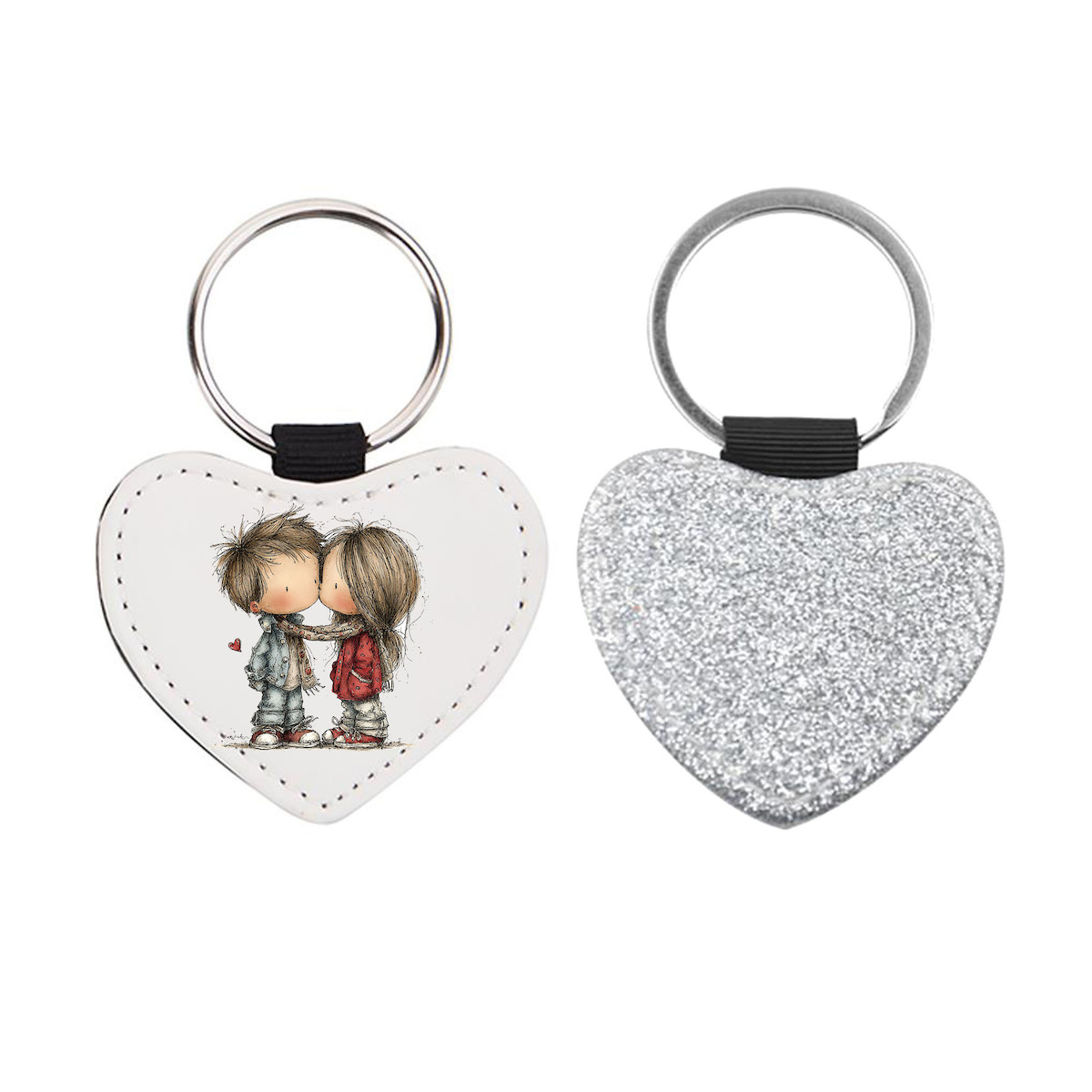 Δερμάτινο Μπρελόκ καρδιά Αγίου Βαλεντίνου Ζευγάρια Glitter Ασημί