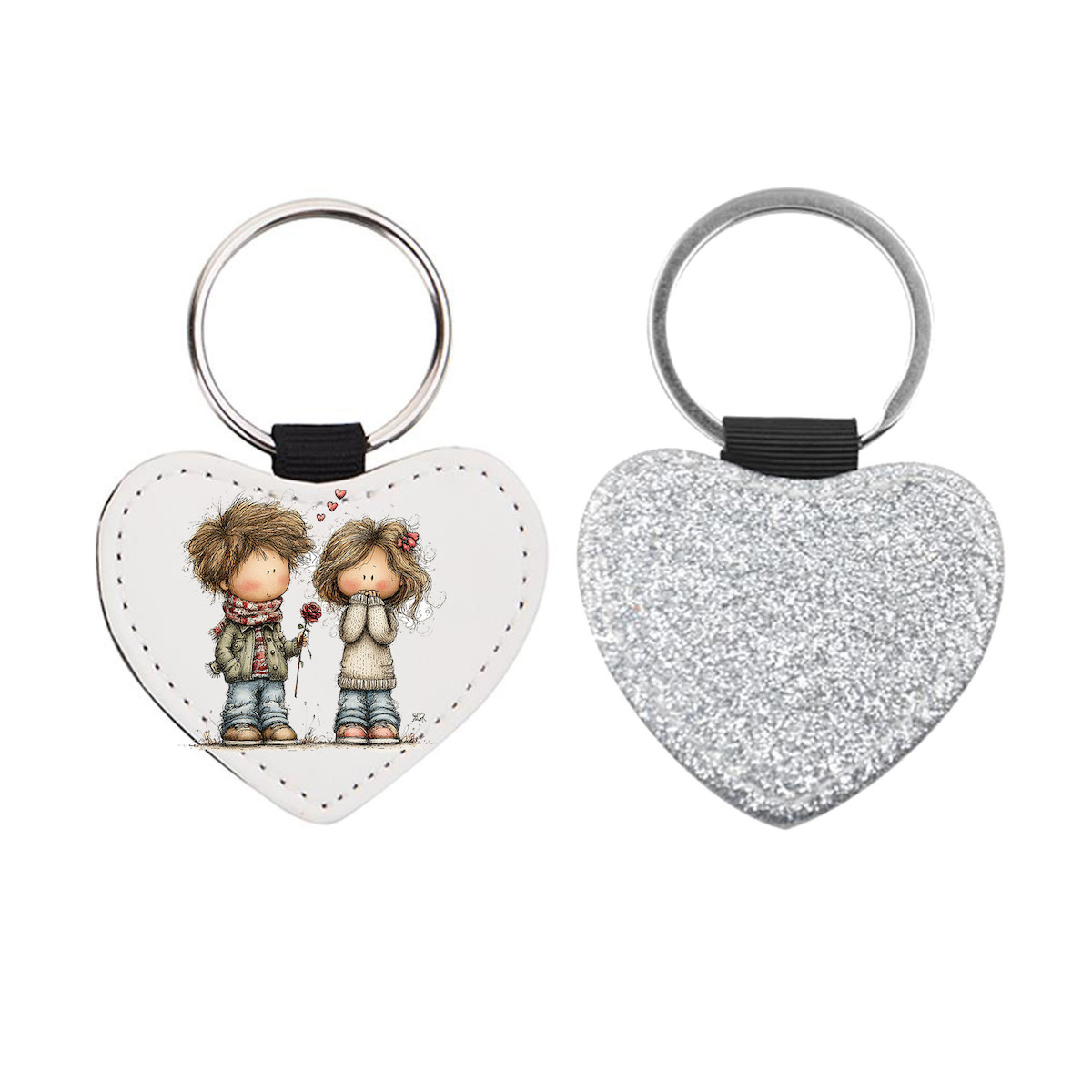 Δερμάτινο Μπρελόκ καρδιά Αγίου Βαλεντίνου Ζευγάρια Glitter Ασημί
